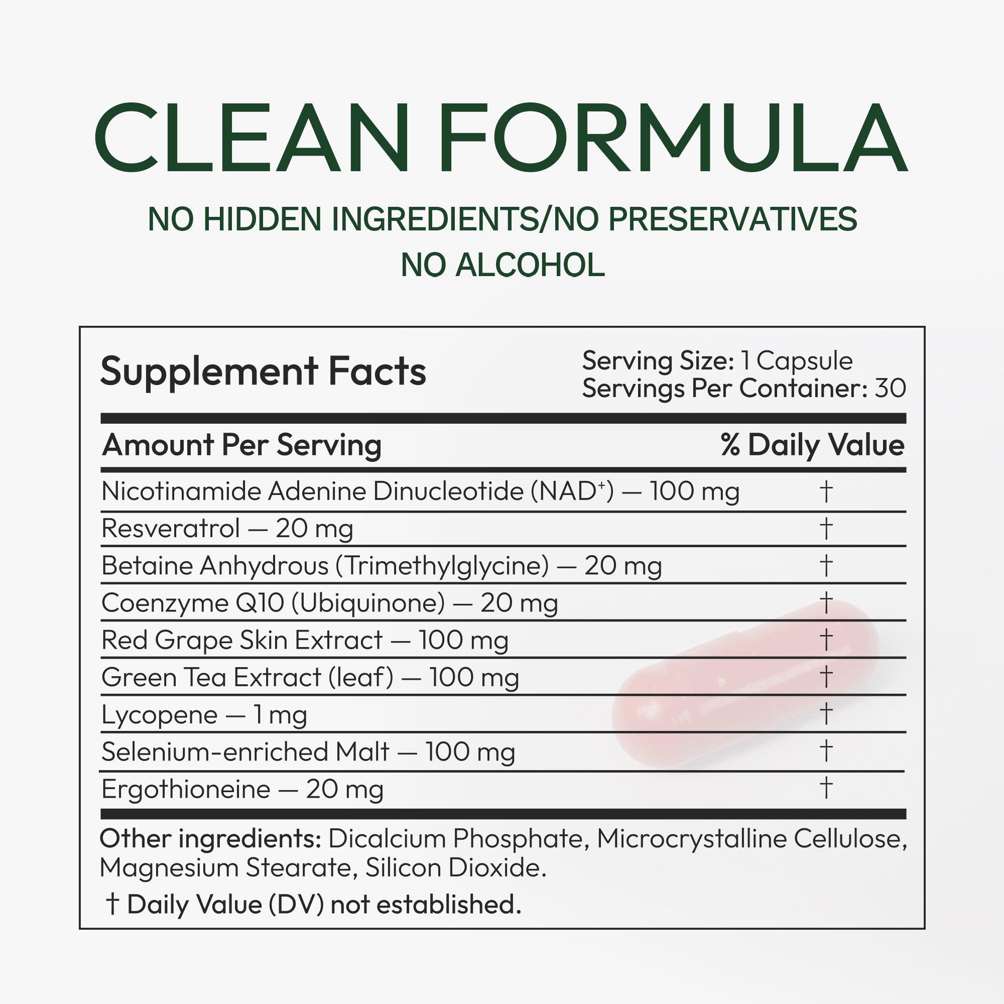- Nicotinamide Adenine Dinucleotide (NAD+) — 100 mg (†)
